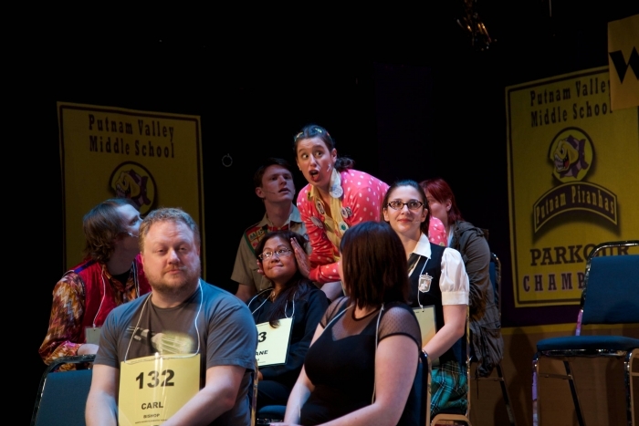 With guest spellers Carl Bishop, Mariane Barredo, Carleigh Cartmell and Heather Low (The 25th Annual Putnam County Spelling Bee)